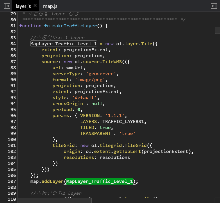 그리고 가장 중요하게 지도를 initialization 하는 단계에서 MapLayer_Traffic_Level_1 ... Level_4까지 지도 layer를 준비하는 과정이 있엇고, 저 위에 있는 wmsUrl을 Console에서 쳐본 결과